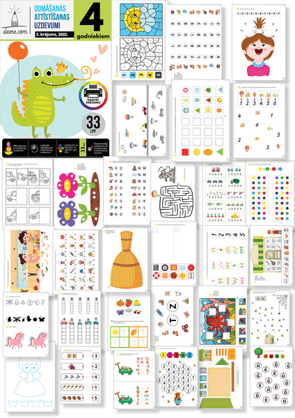 Šis 4-gadnieku krājums domāts 4 līdz 5 gadus veciem bērniem. Tajā iekļauti šādi uzdevumi: