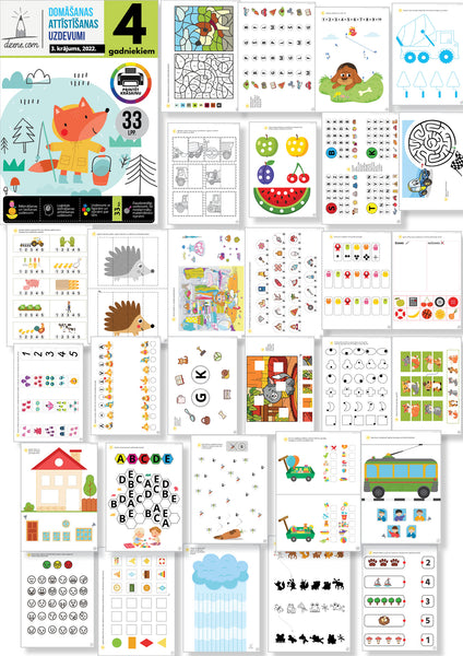 Šis 4-gadnieku krājums domāts 4 līdz 5 gadus veciem bērniem. Tajā iekļauti šādi uzdevumi: