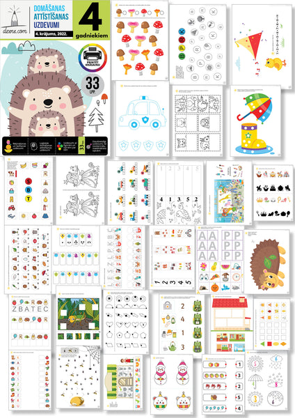 Šis 4-gadnieku krājums domāts 4 līdz 5 gadus veciem bērniem. Tajā iekļauti šādi uzdevumi: