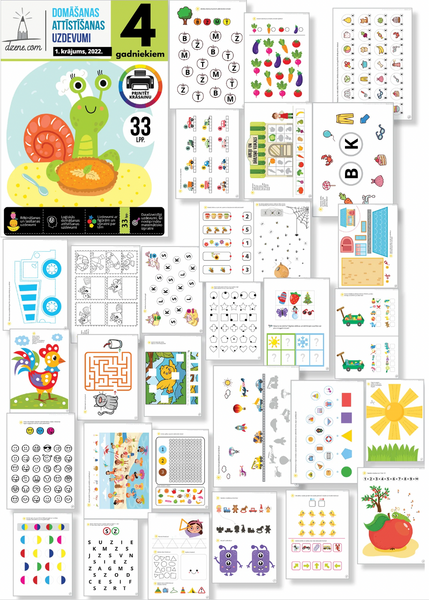 Šis 4-gadnieku krājums domāts 4 līdz 5 gadus veciem bērniem. Tajā iekļauti šādi uzdevumi:
