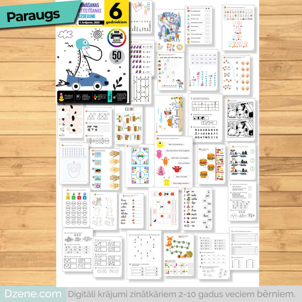 📒 Šie digitālie krājumi domāti 6 līdz 7 gadus veciem bērniem. Krājumi ir veidoti tā, lai tajā būtu pēc iespējas dažādi ar domāšanas attīstīšanu saistīti uzdevumi. Krājumā iekļauti šādi uzdevumi: